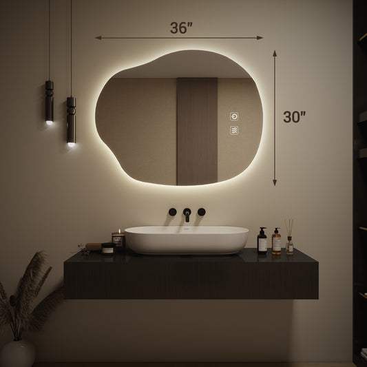 LED Bathroom Mirror with Lights, Irregular Wall Mirror with 3-Color Lighting and Dimmable, Anti-Fog Vanity Mirror for Wall, Horizontal/Vertical (36" x 30")
